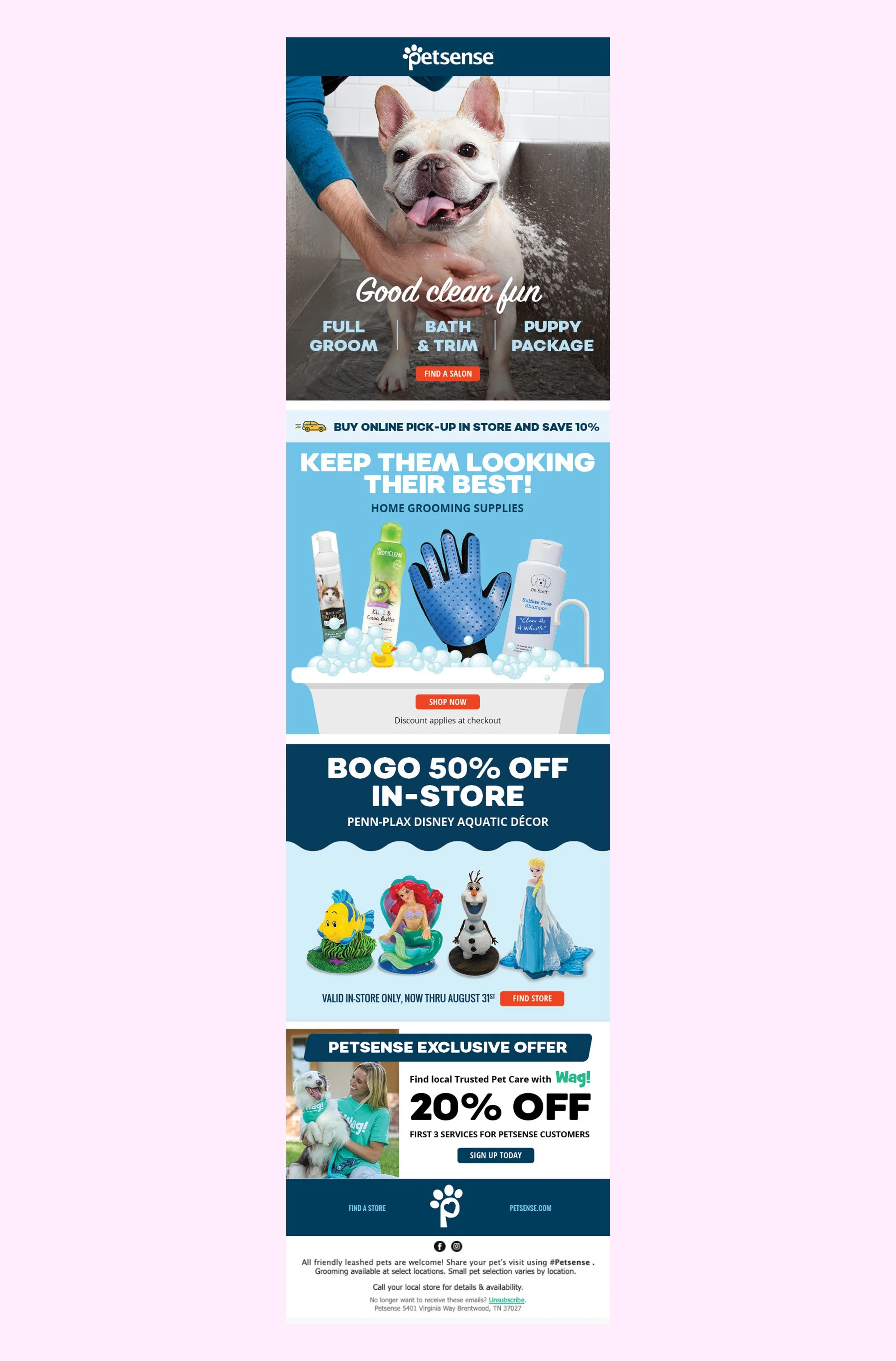 Users’ experience of the email is improved with a positive brand impression. Petsense's playful brand personality front and center for newsletter subscribers.